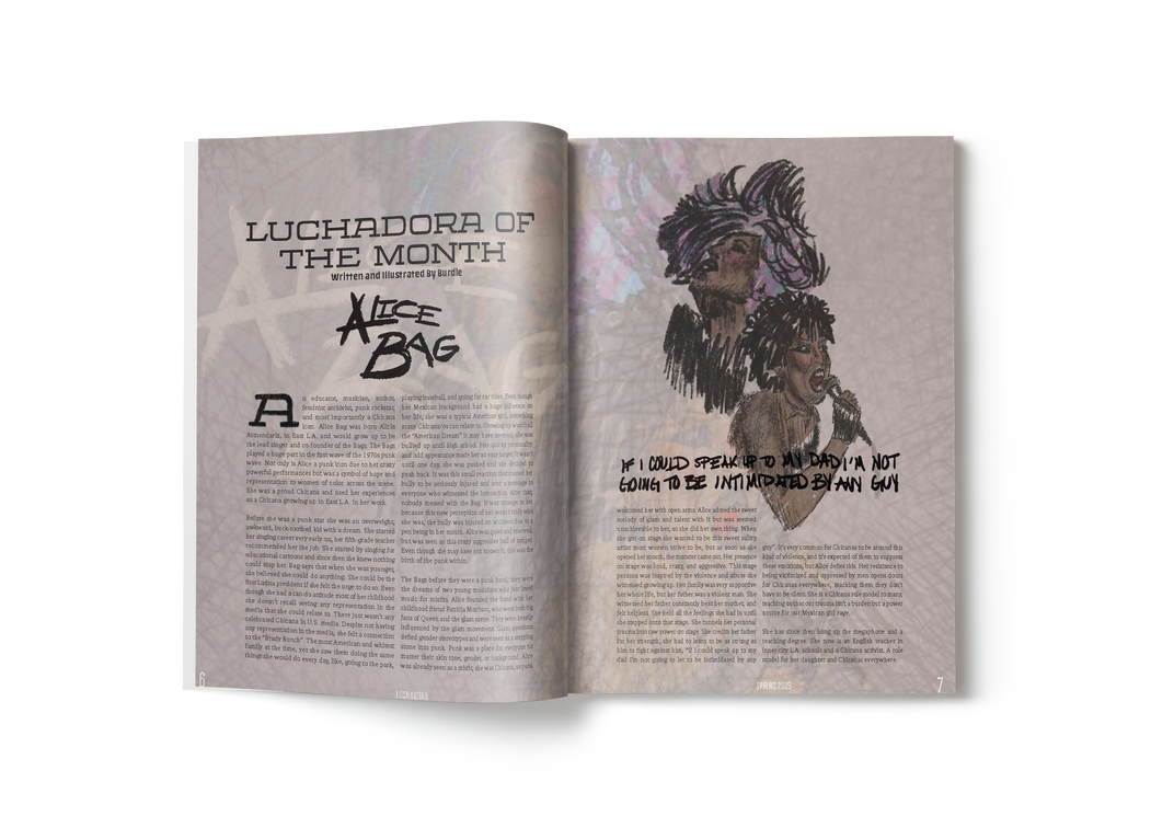 Luchadora is the Chicana experience. An accumulation of art, research, and history. Made by a Chicana,
